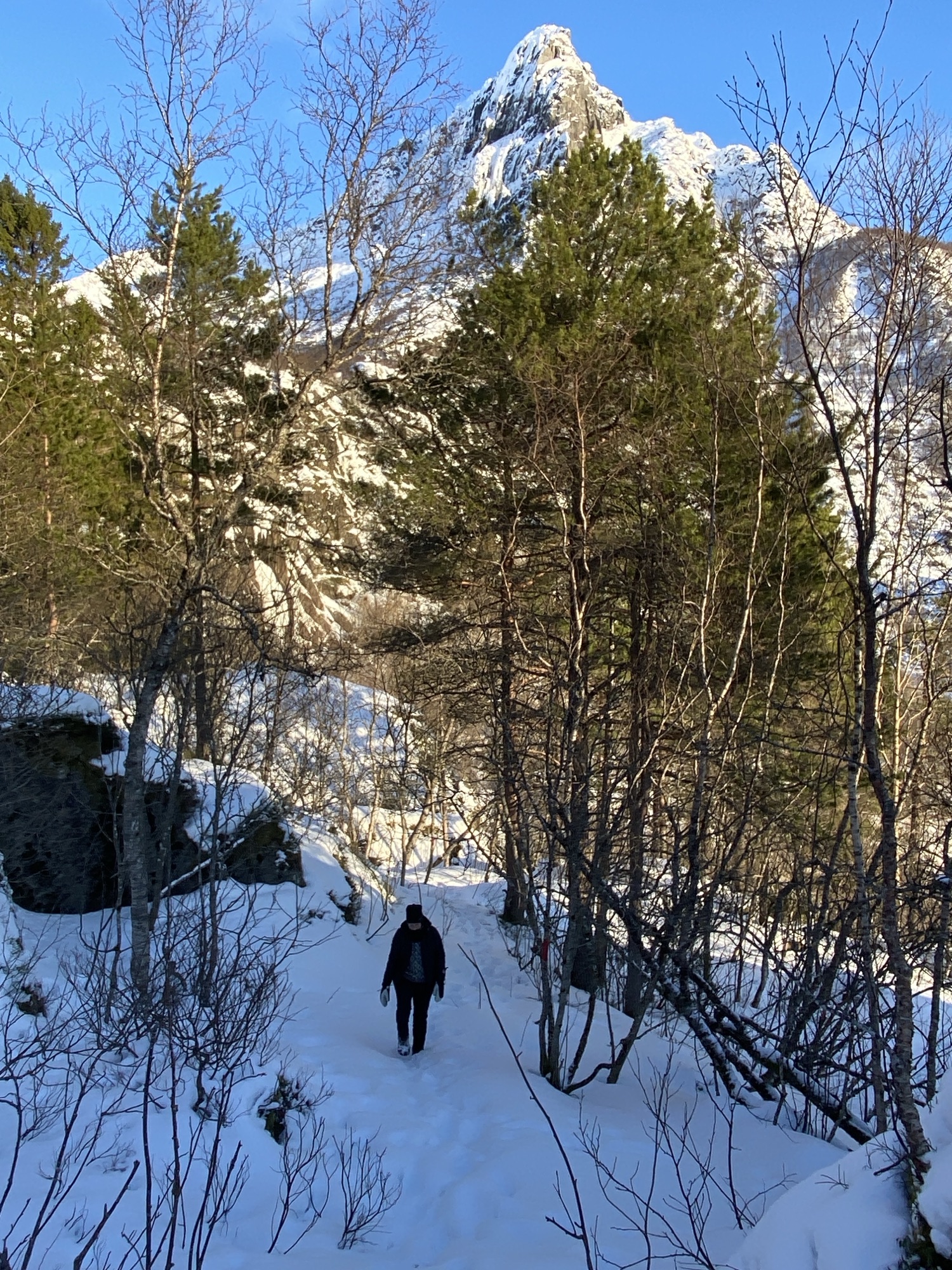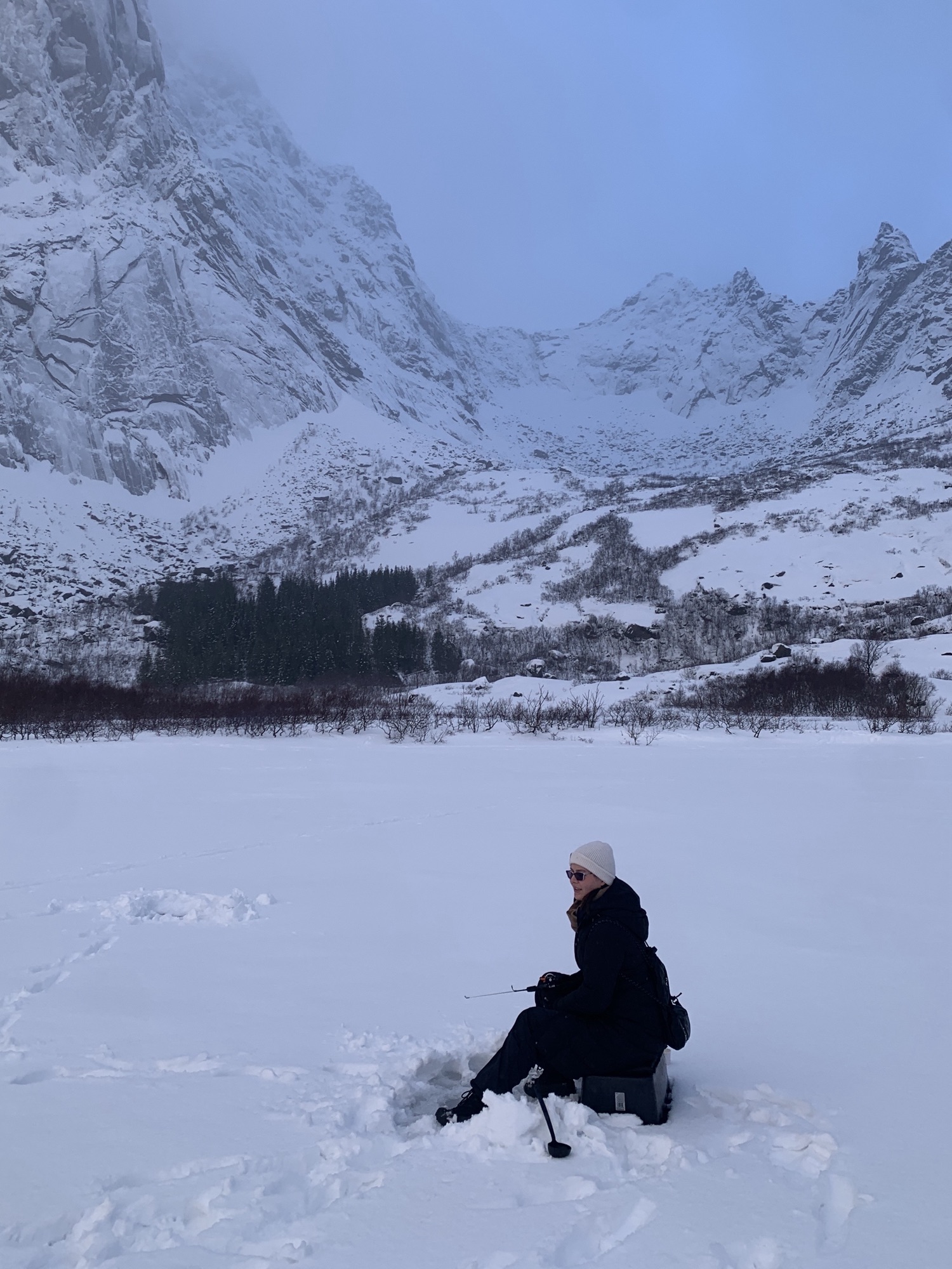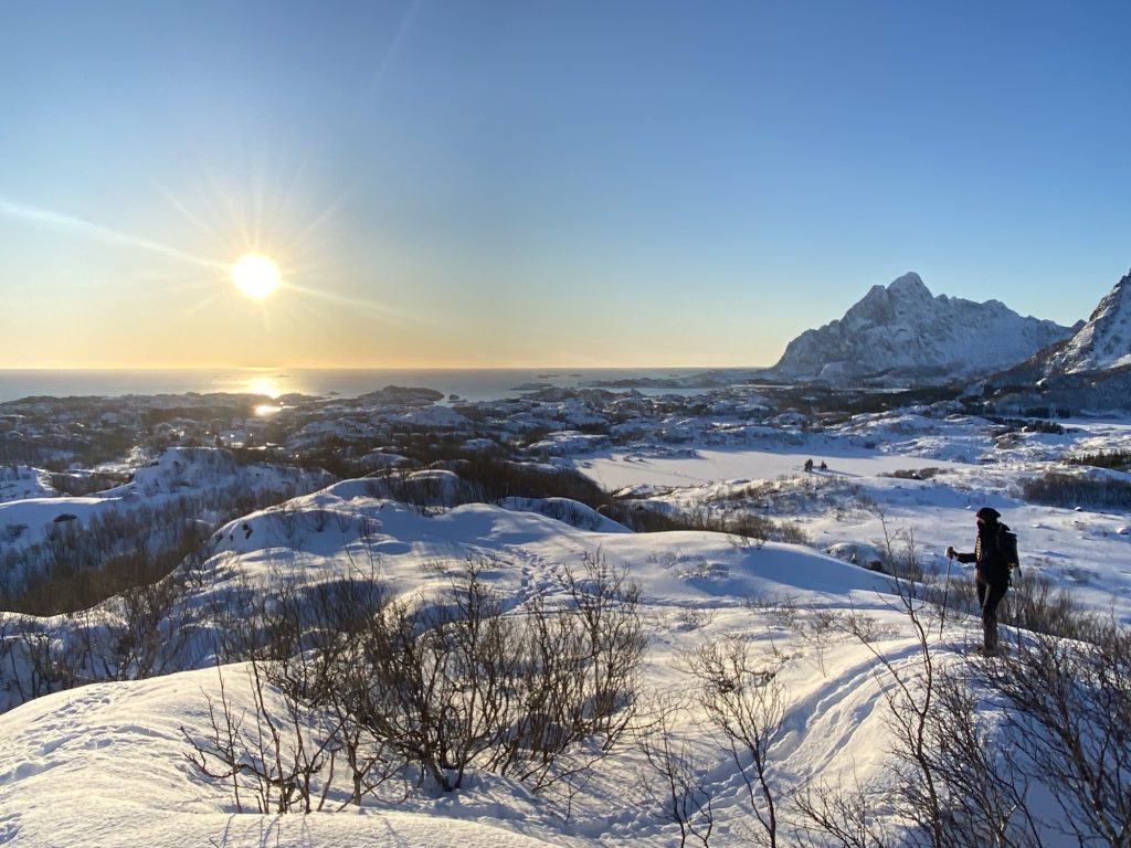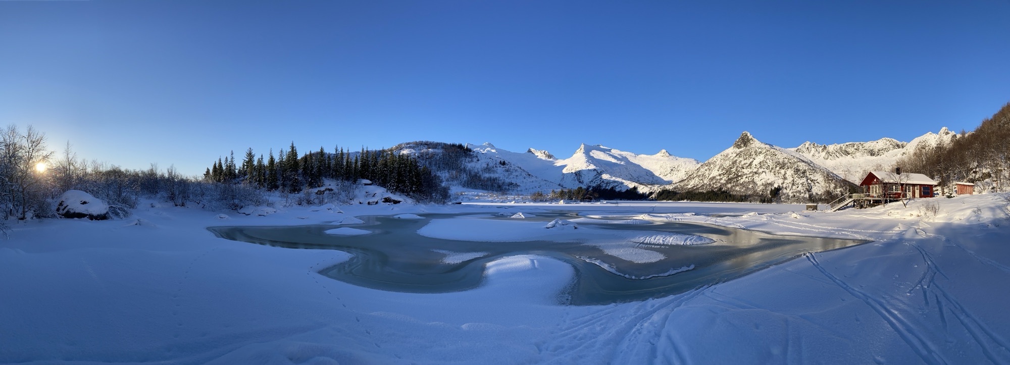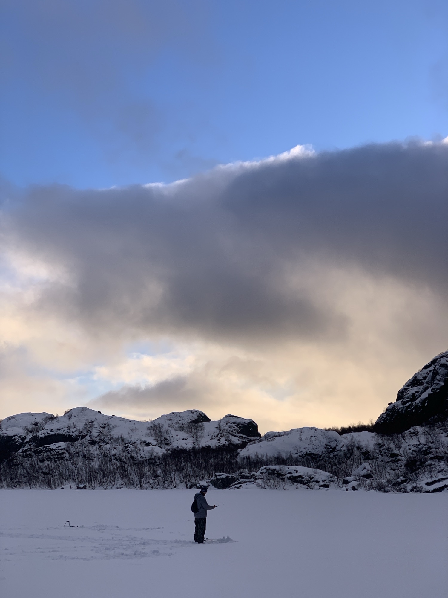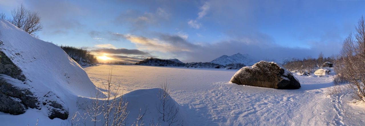 With spikes on the boots and the snowshoes on the back we made our way into Svolvær’s Lakeland for another walk on the ice. Our confidence to concquer this terrain in snowshoes is growing. Leaving the powdered tracks for short de-tours through untouched deep snow becomes normal and adds to the fun. These days are priceless.