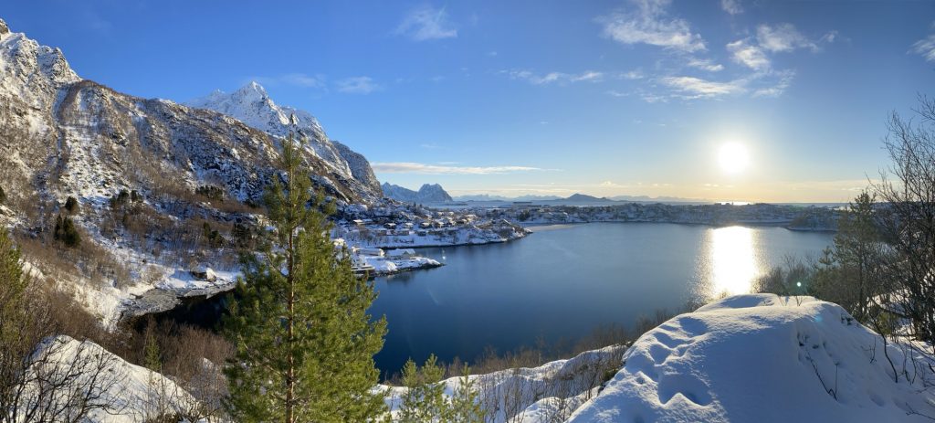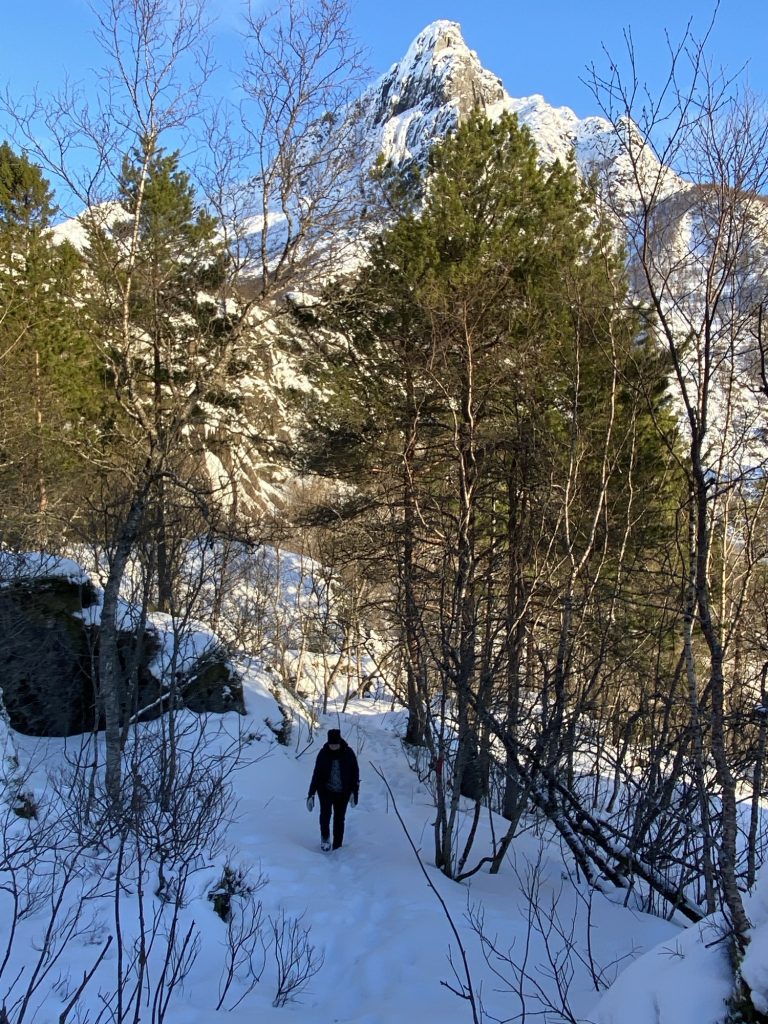 “Height & Pile” were on our action list today for more snowshoe adventures. Two hills between Kabelvåg and Svolvær connected through a mountain ridge. In Norwegian terms, “Høgda & Haugen”. Not high at all but good training ground for us. Divers terrain.