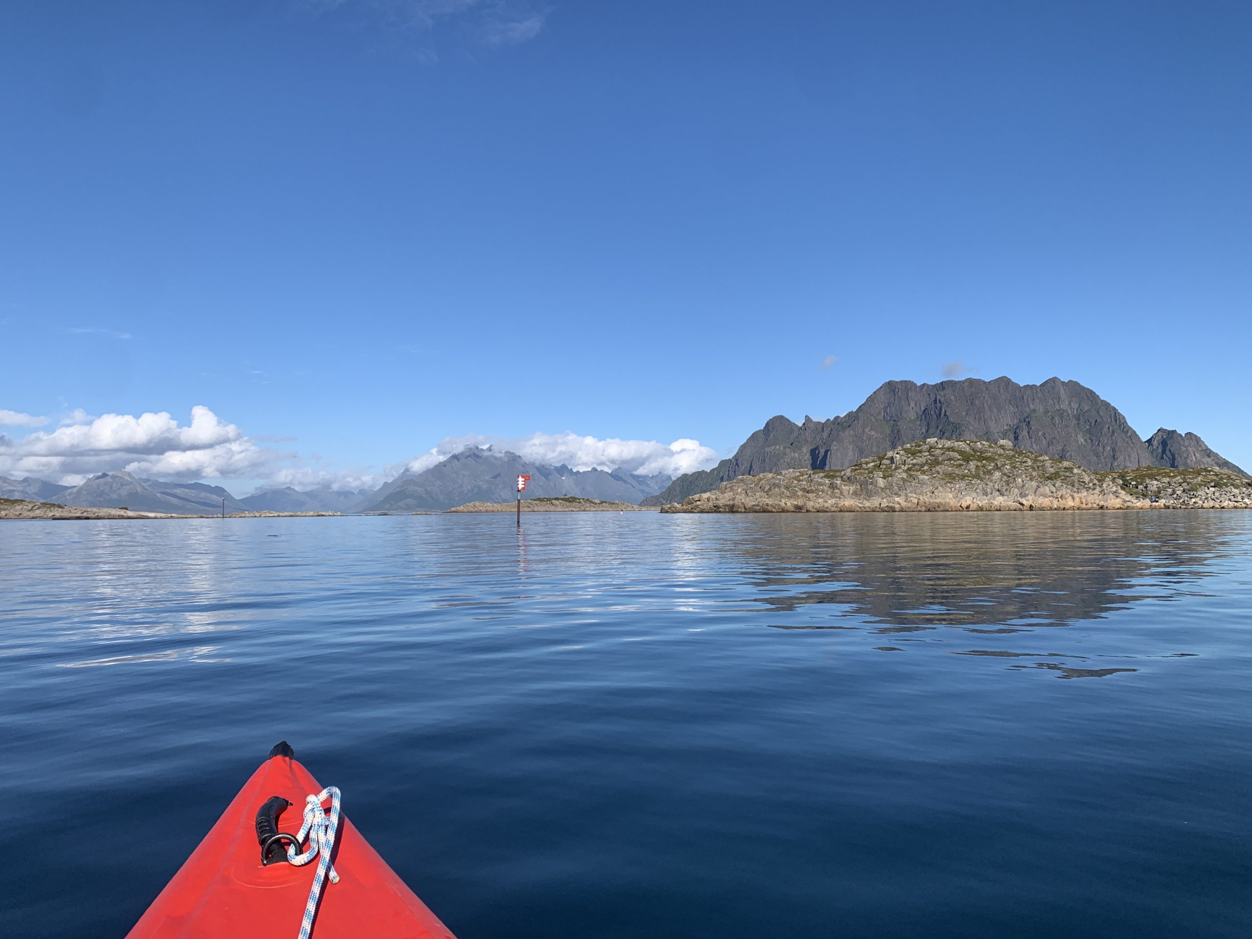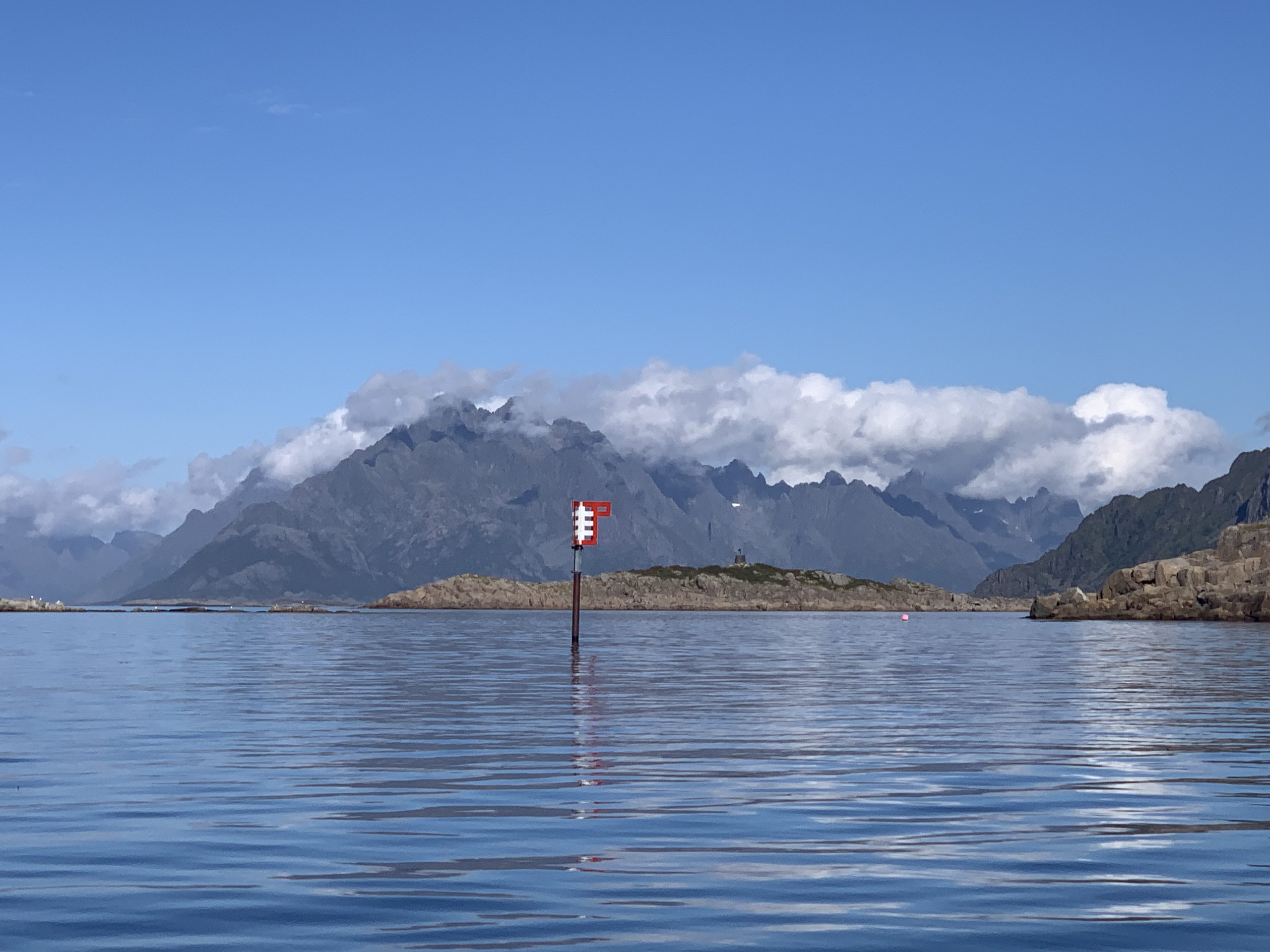 It was a memorable and contemplative paddling today around the Skrova Island. Calm and slightly rough conditions playing hand in hand, just as it goes in normal life, sometimes. The buoyage in form of a crossing, also trying to give direction as shown on the photo; sometimes hard to understand but mostly helpful. I will remember this Round Island Paddling (RIP) for many reasons but one: