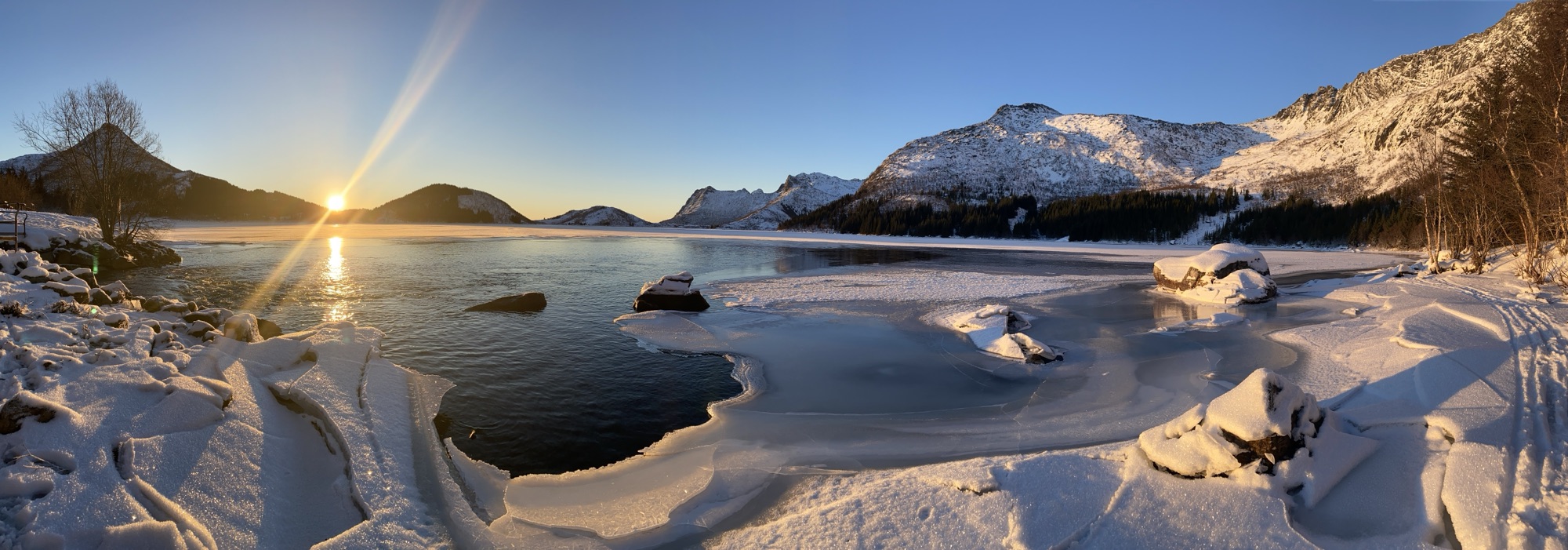 My timing was better today and the shot above represents solar noon at Stor Kongsvatnet. Slowly the sun makes it way over the hills into the plaines. The ice on the lakes is getting stronger and I have seen people crossing the lakes at dedicated places. General advice is still to stay off the ice at this point in time.
