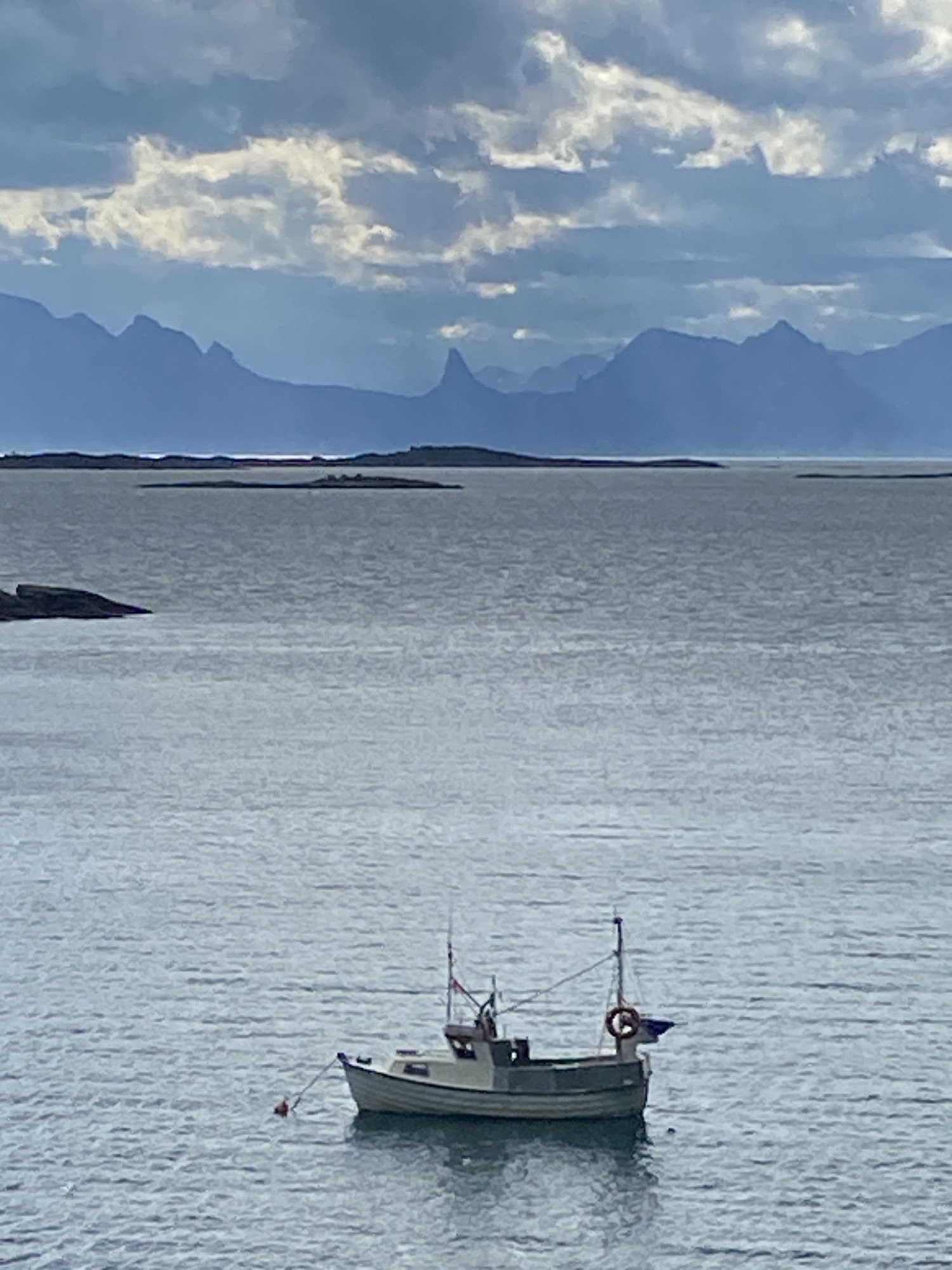 We are currently blessed with some 35kn gusts of wind here in the fjord. Significant wave height in the Vestfjorden is forecasted to 3.3m later the week. It is an either or situation. Either I leave tomorrow back to Svolvær/Skrova or I have to stay at least for a week in the fjord. Rain will be inclusive. I will decide tomorrow.