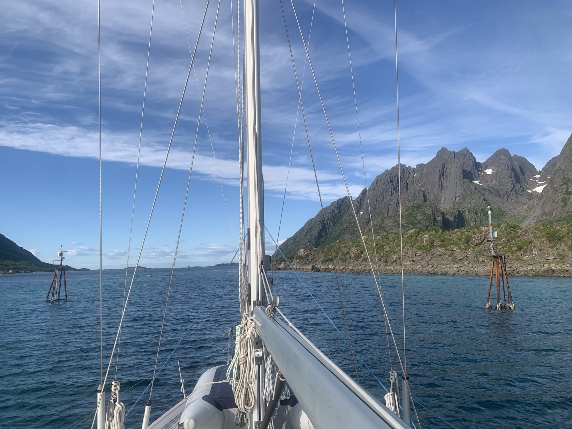 The final encouragement to pass through the Øyhellsundet on my way back came from Geir. There is a very narrow and shallow area, well marked though, through this scenic sund. It turned out easier than it looked on the Navionics chart under the given weather conditions. Once passed the final buoy, there was a good breeze and sailing back to Skrova Island became a pure pleasure.