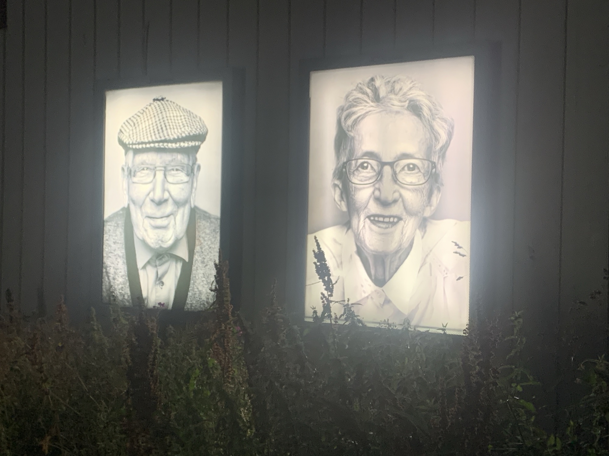 Nice evening, nice walk home along some illuminated photo artwork, nice gale.