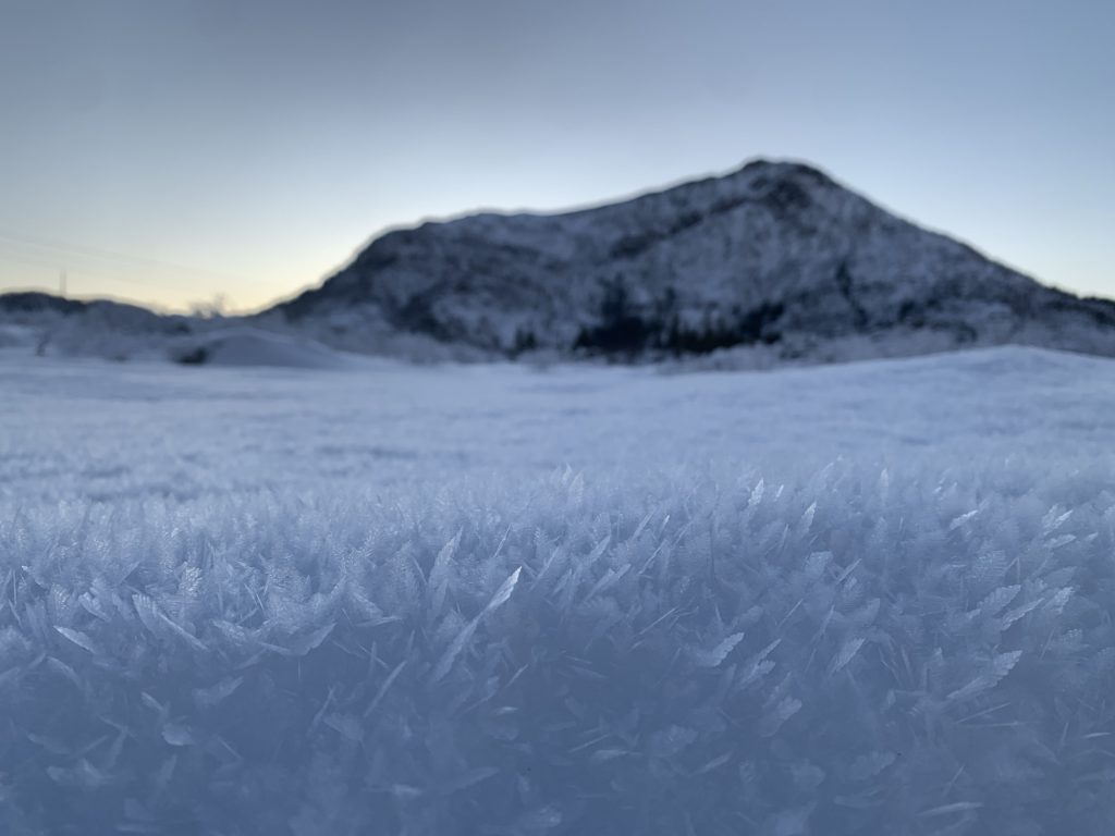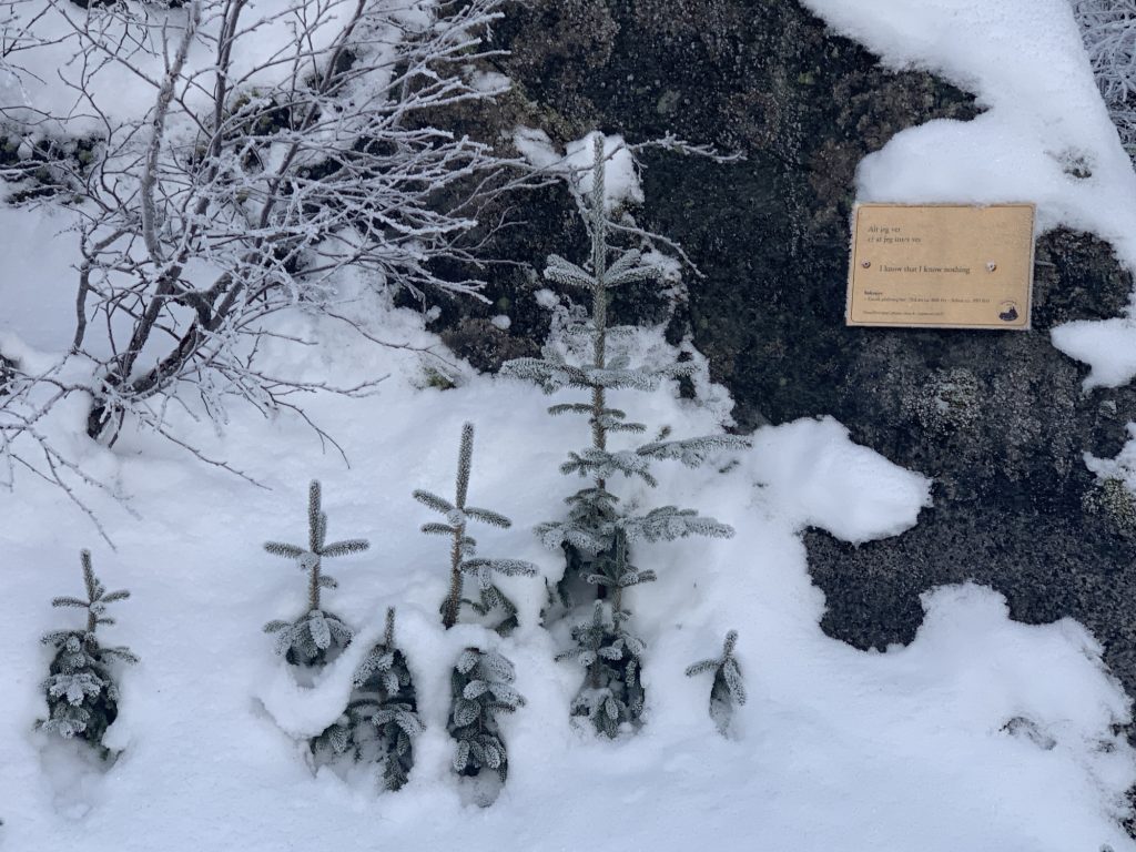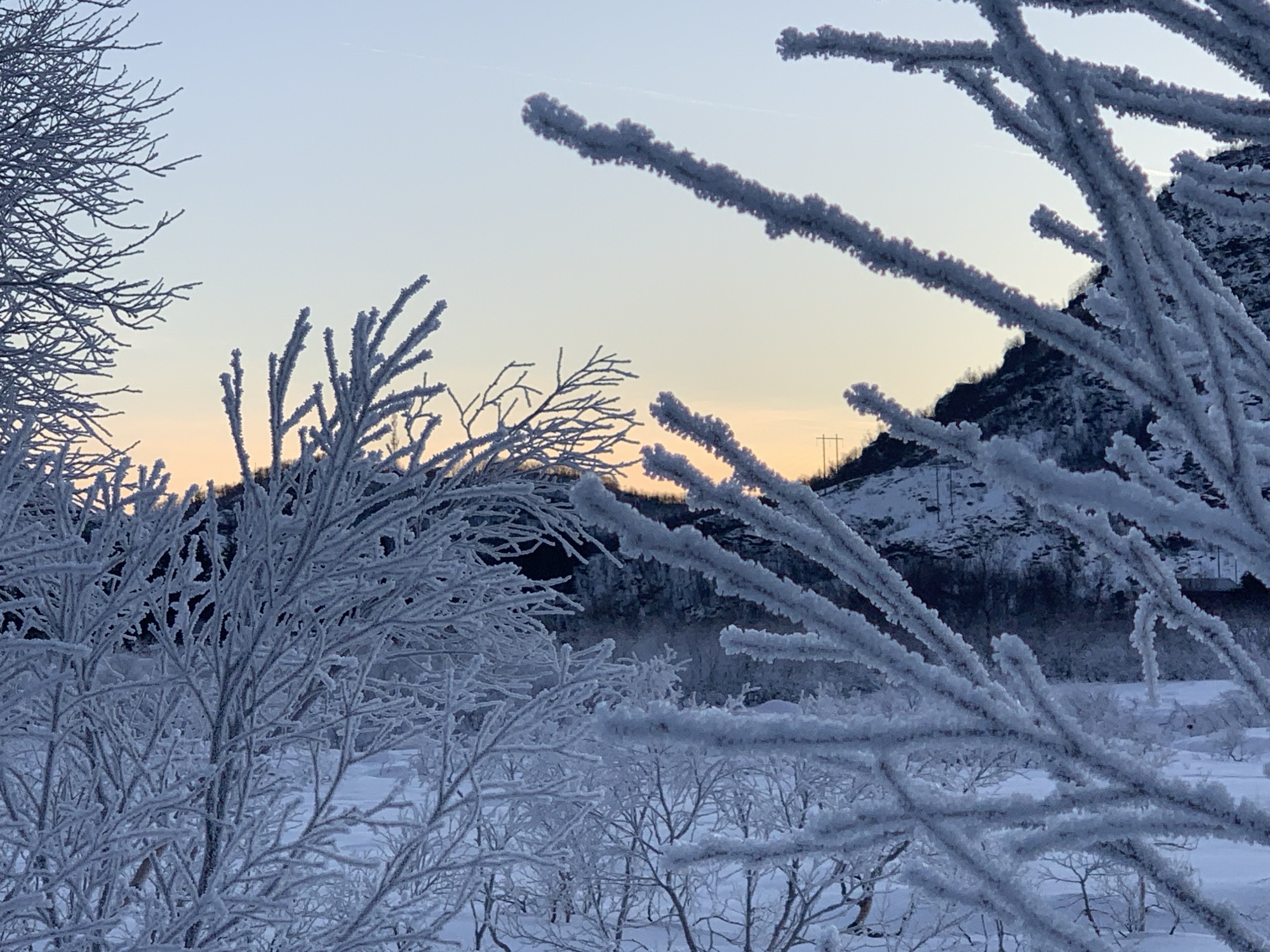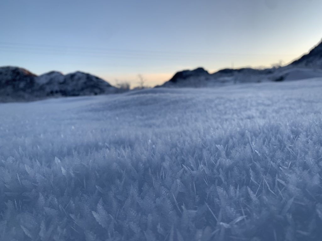 The snow/ice conditions today were as slippery as they could be. I have never seen ice crystals growing out of the ground like grass on wider terrain. Hoarfrost on twigs and trees are not unusual but fingersized ice crystals of around 3cm covering plains and rocks definetely impressed me today.