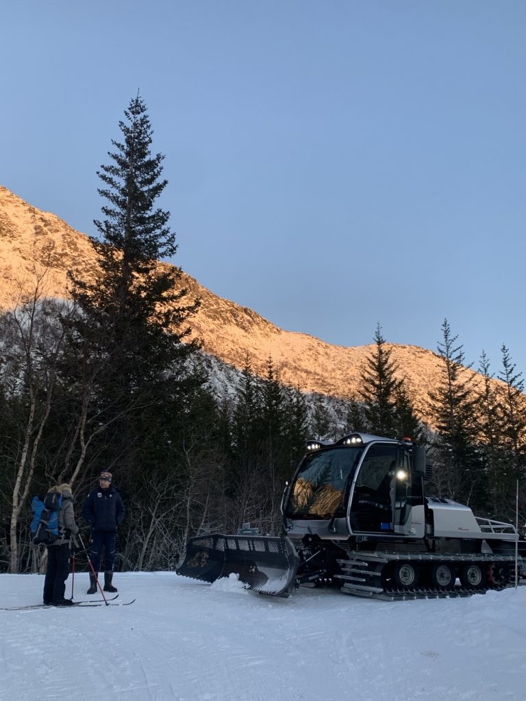 At some stretches of the track the green shines through and grooming will only restart once we have had more snow. On the remaining stretch the KS Ski Lofoten Team puts all efforts in to keep us going. Thank you!